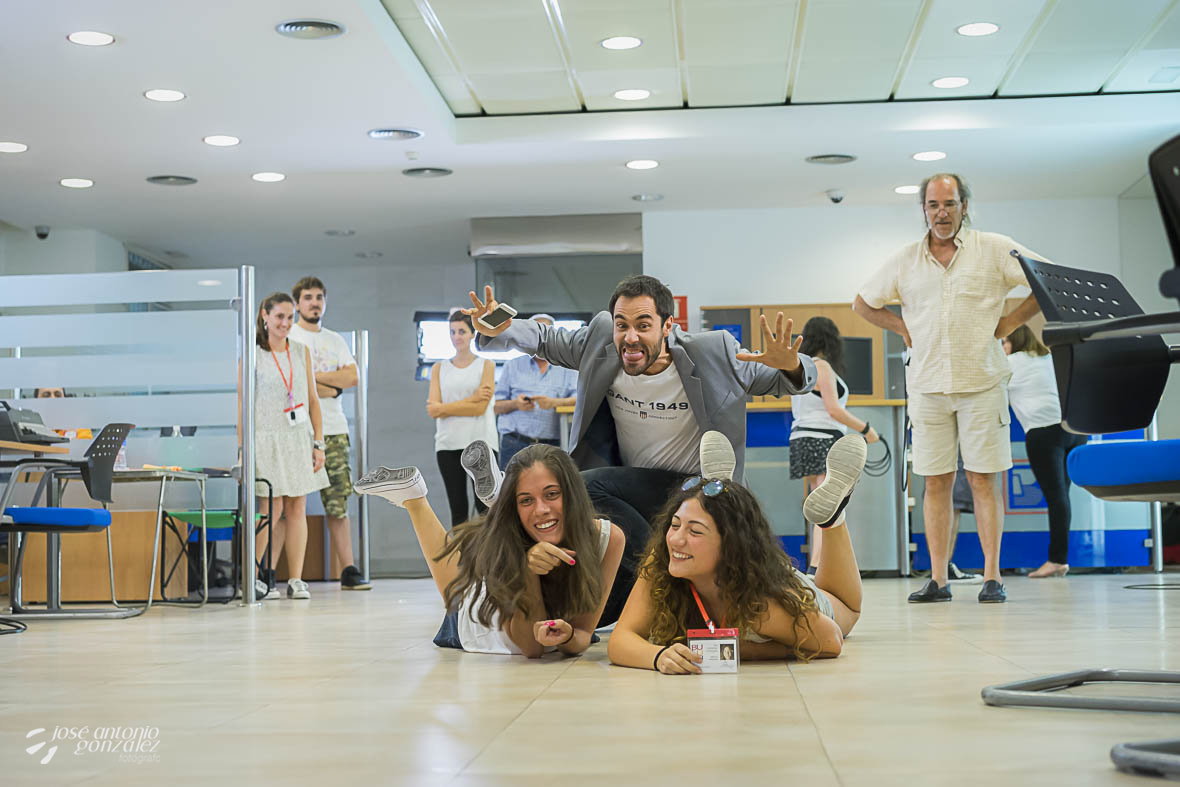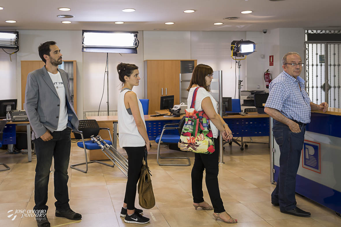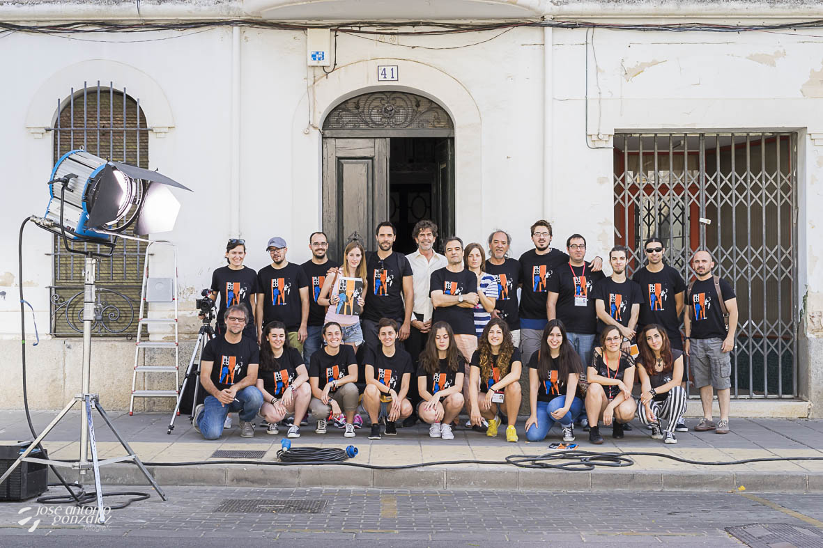 Los actores principales, Simón Ferrero, Juan Carlos Anuncibai, Soraya Izquierdo y Luis Prieto, junto al director Alberto Pino, director de fotografía Fernando Jover, director de producción Pedro Pino y a un equipo de más de veinte personas lo pasamos genial… !pero con un calor infernal!